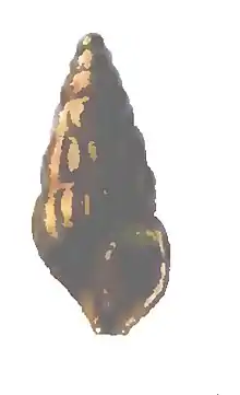 (Original description) The small shell has an elongate and subfusiform shape. It is dark purplish brown, paler at the apex. It contains 6½ whorls, divided by a deep suture ; the first 1½ forming the protoconch, large, semiglobose and smooth. The rest are slightly convex and longitudinally ribbed. The ribs are stout, broader than the interstices, suberect, a little arcuated. Those on the body whorl become obsolete a trifle below the middle, whence downward the whorl is transversely finely striated, the striae at the extremity being closer together than those above. The aperture is small, ovate, occupying about one third of the entire length. The columella is arcuate, covered with a thin callosity. The outer lip is thickened, with a very faint sinus a little below the suture. The siphonal canal is short, distinct and oblique.[2]