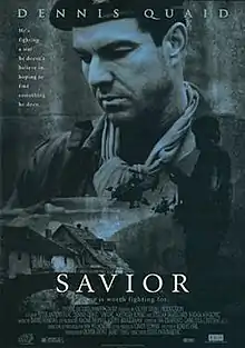 Savior is a 1998 war film starring Dennis Quaid, Stellan Skarsgård, Nastassja Kinski, and Nataša Ninković. It is about a U.S. mercenary escorting a Bosnian Serb woman and her newborn child to a United Nations safe zone during the Bosnian War.