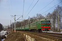 The Savyolovsky suburban railway line (Russian: Савёловское направление Московской железной дороги) is one of eleven suburban railway lines used for suburban railway connections between Moscow, Russia, and surrounding areas, mostly in Moscow Oblast. The Savyolovsky suburban railway line connects Moscow with the stations in the north, in particular, with the towns of Dolgoprudny, Lobnya, Yakhroma, Dmitrov, Taldom, Dubna, and Kimry. The stations the line serves are located in Moscow, as well as in Dolgoprudny, Lobnya, Mytishchi, Dmitrov, Dubna, and Taldom in Moscow Oblast, and in Kimrsky District of Tver Oblast. Some of the suburban trains have their southern terminus at Moscow Savyolovsky railway station in Moscow, others commute from the Belorussky suburban railway line. In the northern direction, the suburban trains terminate at Lobnya, Aeroport Sheremetyevo, Iksha, Dmitrov, Verbilki, Dubna, Taldom, and Savyolovo.[1] The suburban railway line is served by the Moscow Railway. The tracks between Moscow Savyolovsky railway station and Lobnya are also used by Line D1, one of the Moscow Central Diameters, and by the service to Sheremetyevo International Airport, provided by Aeroexpress. A section between Iksha and Yahroma is also used by the Greater Ring of the Moscow Railway.