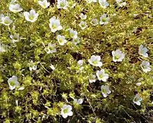 Saxifraga hypnoides, called mossy saxifrage, cut-leaved saxifrage, Dovedale moss, Eve's cushion, Indian moss, lady's cushion, and queen's cushion, is a species of flowering plant in the family Saxifragaceae.[2] It is native to northwestern Europe; Iceland, the Faroe Islands, Norway, Ireland, Great Britain, Belgium, and France, and has been introduced to Czechia, the Eastern Himalayas, and Tibet.[1] In the north of its range a tetraploid form predominates, and in the south a diploid form is more likely to be found.[3]