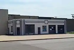 The Sayre Champlin Service Station is a historic service station located on old U.S. Route 66 in Sayre, Oklahoma. The station, an affiliate of the Champlin Refining Company, was built in 1934; it replaced an older station which predated Route 66. Its main building has a Streamline Moderne design which features oval pilasters and horizontal sections, plate glass and multi-light windows, and a contrasting color scheme. The station provided both gasoline and automobile services to Route 66 travelers; in addition, the large tanker trucks used to supply the station's gasoline contributed to the highway's traffic. After Interstate 40 bypassed Route 66 in 1958, business at the station declined, and it closed permanently in 1967.[2]