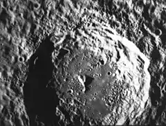 Scaliger is a prominent lunar impact crater in the southern hemisphere on the far side of the Moon. It is attached to the northwest rim of the walled plain Milne, and the shared perimeter has reshaped the outer wall of Scaliger slightly, producing a straightened section along the southeast. To the west of Scaliger is the Lacus Solitudinis.