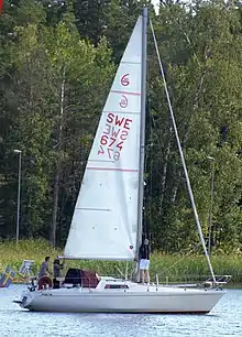 The Scampi 30 is a family of Swedish sailboats that was designed by Peter Norlin as an International Offshore Rule (IOR) Half Ton class cruiser-racer and first built in 1970. The design was Norlin's first and proved to be both a sail racing and commercial success.[2][3][4][5][6][7]