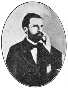 Vârnav ultimately settled in Bârlad in 1867,[140] and his last months were spent in Tutova County politics, but also in efforts to furnish the local hospital.[141] According to Melchisedec Ștefănescu, he also continued to "propagate his political and religious heresies".[128] With Ion and Constantin Codrescu, P. Chenciu, A. V. Ionescu, and Ioan Popescu, he established a "National Liberal Party", which functioned as the provincial affiliate of the Moldavian-wide Free and Independent Faction.[142] Like other Factionalists, Vârnav also involved himself in the debates over the issue of Jewish emancipation, and is described by biographer Dimitrie R. Rosetti as a "firebrand antisemite".[4] According to a Jewish man's letter, published in L'Echo Danubien, his "preaching against the Israelites [was] of the most barbaric kind", disturbing the otherwise tolerant mood of Tutova.[143] In the election of December 1867, Vârnav put himself up as a Tutova candidate for both the Senate and the Assembly. He was soundly defeated in the former race by Manolache Costache Epureanu (who took 163 out of 233 total votes),[144] but was able to win a deputy's mandate at Tutova's Fourth College. Without ever taking his seat, he died at Bârlad, on January 6, 1868 [O.S. December 25, 1867],[145] after illness that lasted "just one day".[146][147]