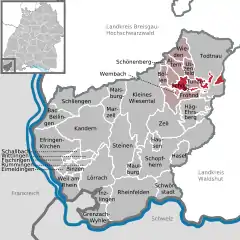 Location of Schönau im Schwarzwald within Lörrach district ![]() | |