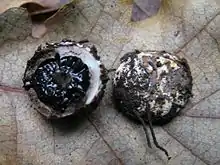 - ↑ Malençon G, Riousset L (1977). "Pyrenogaster pithyopilus G. Malençon et L. Riousset, nouveau genre et nouvelle espèce de Gastéromycète (Geastraceae)". Bulletin de la Société Mycologique de France (in French). 93 (3): 289–311.