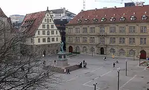 Schillerplatz is a square in the old city centre of Stuttgart, Germany named in honour of the German poet, philosopher, historian, and dramatist Friedrich Schiller. Schillerplatz stands to the south west of Stuttgart's main square, Schlossplatz.