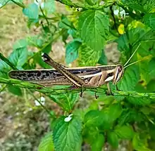 {{cite web}}:|author=has generic name (help)CS1 maint: multiple names: authors list (link) - ↑ Antoniou A & Robinson CJ (1974). Laboratory studies on the effects of crowding on phase and the life history of Schistocerca paranense (Thunberg)(Orthopera: Acrididae: Cyrtacanthacridinae). J. Nat. Hist. 8: 701-715