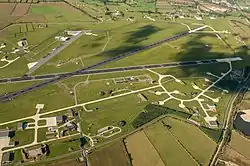 After the end of World War II British Air Force of Occupation took control of the field on 6 May 1945, which they called Airfield B.164. In the summer of 1945 Hawker Typhoon Ibs of No. 121 Wing RAF were based there. In February 1948 RAF Schleswigland became active again as a training field for transport- and glider-aircraft from other stations. RAF Schleswigland was chosen as an operating base for the Berlin Airlift (RAF Codename Operation Plainfare) in the fall of 1948. On 11 November 1948 the first transport aircraft, Handley Page Hastings C.1s of No. 47 Squadron RAF arrived. No. 297 Squadron followed later during the airlift.[2] Civilian companies started using RAF Schleswigland to airlift fuel to Berlin, since Schleswigland was well equipped which underground fuel lines dating from German use during the war. Lancashire Aircraft Corp. started flight on 24 November 1948 which specially converted Handley Page Halifax/Haltons,[3] British American Air Services with Handley Page Halton starting 25 January 1949, Westminster Airways with Handley Page Halton starting 29 January 1949 and Scottish Airlines effective 19 February 1949 with Consolidated Liberator. On 6 October 1949 the last airlift flight operated out of RAF Schleswigland, marking the end of Operation Plainfare.
