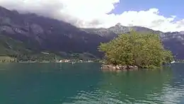The Schnittlauchinsel (German, lit. "chives island") is an island in the Walensee, located in the Canton of St. Gallen. It is the only island in the lake and among the largest in the canton of St. Gallen. The island has a length of 80 metres and a maximum width of 20 metres. Its highest point is 420 metres above sea level, only 1 metre above lake level (419 m). The minimum distance from the shore is about 320 metres.