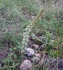 Its natural habitat is in dry, calcareous, rocky grasslands and open scrubby woodlands.[1][3]