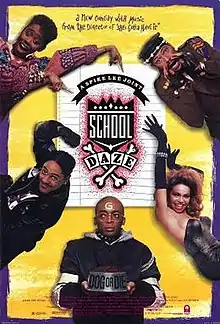 School Daze is a 1988 American musical comedy film written and directed by Spike Lee and starring Lee along with Laurence Fishburne (credited as Larry Fishburne), Giancarlo Esposito, and Tisha Campbell. Released on February 12, 1988 by Columbia Pictures as Lee's second feature film, and based partly on his experiences as a student at Morehouse College in the Atlanta University Center during the 1970s, it is a story about undergraduates in a fraternity and sorority clashing with some of their classmates at a historically black college during homecoming week. It also touches upon issues of colorism, elitism, classism, political activism, hazing, groupthink, female self-esteem, social mobility, and hair texture bias within the African-American community.[2]