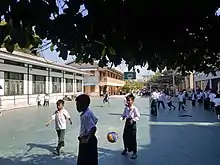 School uniforms in Myanmar, also called the White-Green (Burmese: အဖြူအစိမ်း) is named after the colour code of uniforms of both public school students and teachers in Myanmar. The uniform rule is mandatory,[1] mandated in 1966.[2] Non-state schools and private schools are excluded from the mandate and can have their own uniforms.