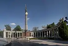 In August 1945, immediately after the end of World War II, the Red Army revealed the War Memorial (now popularly called the Russian Monument) behind the Hochstrahlbrunnen fountain. Until 1955, a Soviet T-34 tank was placed there. During the occupation, the southern part of square was renamed Stalin Square on 12 April 1946, and this name was officially effective until 18 July 1956. The "Haus der Industrie" (House of Industry), then No. 4 Stalin Square, was the seat of the Allied Council of the four occupying powers until 1955.