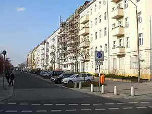 Schwedter Straße, named after the town of Schwedt/Oder, is an inner-city road in the Mitte and Prenzlauer Berg districts of Berlin. It partially forms the border between both quarters and crosses Mauerpark at the site of the former Berlin Wall.