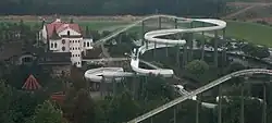 Bobbahn is a steel bobsled roller coaster at Heide Park that opened in 1993.[1][2] The 826 m long journey begins with a lift hill that transports passengers to a height of 27 m. Then it goes through numerous very tight bends, some dark ride passages, as well as some block brakes until the final brake is reached. A second lift hill brings the trains back to the level of the station.