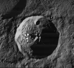 ![]() Lunar Orbiter 4 image (Cluster of dots near center is blemish on original) | |