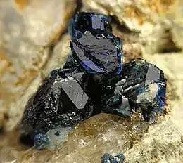 Scorzalite ((Fe2+,Mg)Al2(OH,PO4)2) is a dark blue phosphate mineral containing iron, magnesium, and aluminium phosphate. Scorzalite forms one endmember of a solid solution series with the lighter, more magnesium-rich lazulite.
