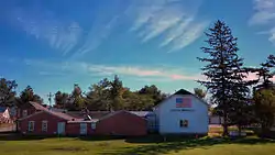 The historic district at the time of its nomination consisted of 52 resources, including 41 contributing buildings, three contributing structures, and eight non-contributing buildings.[4] Among the historic buildings there are 19 commercial-related buildings, 15 houses, two railroad-related buildings, three garages and two sheds. The historic structures include a silo and the two roads that form the crossroads. The buildings that are not considered historic are more recent construction.