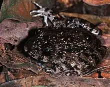 Scotobleps is a monotypic frog genus in the family Arthroleptidae; its sole species is Scotobleps gabonicus,[4][5] sometimes known as the Gaboon forest frog or Gabon forest frog.[1][3][5][6] It is found in eastern Nigeria, western and southwestern Cameroon, Equatorial Guinea, western Gabon, western Republic of the Congo, and western Democratic Republic of the Congo.[1][3][5] Its range could extend into the Cabinda Enclave of Angola.[1][3]