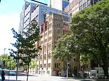 By the 1990s, there were questions over the building's future, and its owner, the Presbyterian Church of New South Wales, initiated a series of redevelopment proposals.[14] By 1998, when the last tenants were evicted, it was home to an 80-person congregation, which was forced to move to a church in Devonshire Street, artists and community groups, who were confined to the first two floors, with the upper storeys having been closed for some years. By the time of its eventual redevelopment, it had undergone several years of disuse and had been deconsecrated. In 1992, the church proposed to immediately demolish the building and build an 18-storey office complex, which met with strong Sydney City Council opposition and a trade union "green ban" and eventually did not proceed. In 1995, it was proposed to develop 13-storey office complex behind the existing facade, which collapsed when the intended tenant, the private training institute Australian Academy, withdrew from the proposal. Proposals continued throughout the remainder of the 1990s. In 2001, the Presbyterian Church of New South Wales sold the then-disused church site to a subsidiary of developer Westpoint Corporation, retaining a strata title over the existing church building, which was to be retained in any redevelopment. It was eventually redeveloped in 2005, with 148 apartments built on top of the existing church. The restoration, funded by the redevelopment, faced challenges due to the building's disused state: contractors responsible for the renovation described "leaky ceilings, crumbling sandstone and damaged timber and metalwork", and having to sift through the contents of a floor "strewn with rubbish", among other issues. The restoration won the 2006 MBA Construction Award for restoration of an historic building up to $5 million and the 2006 RAIA NSW Multiple Housing Award.[15][16][17][18][19][10][20][21][22]
