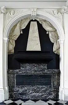 One of its chapels had a bronze urn containing the brain of King James VII. After he died of a brain hemorrhage on 16 September 1701 at Saint-Germain-en-Laye his body was laid in a coffin at the Chapel of Saint Edmund in the Church of the English Benedictines in the Rue St. Jacques. However, during the French Revolution, his body was desecrated and the other remains were lost.