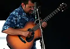 As a songwriter and musician Law is known for focusing on rock, blues, bluegrass, and original Americana.[1] He specializes in electric and acoustic guitar, also singing and playing mandolin.[1] As a guitar player, he has been influenced by artists such as the Jerry Garcia, Clarence White, Jerry Reed, Carlos Santana, Jimi Hendrix and Earl Scruggs.[3] Acoustic Guitar described him as an "esteemed flatpicker," which is a style of bluegrass guitar playing he frequently employs on his recordings.[6]