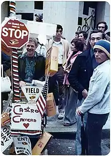 ![]() Scott Smith pushing shopping cart with Castro Camera signs at Gay Freedom Day Parade, 1976 | |
