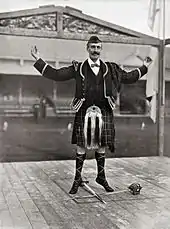 A sword dance and Scottish highland dances were included at the reception for Anne of Denmark at Edinburgh in May 1590.[10] Seventeen sword dancers wore bells and newly made suites or "stands" of Highland clothes.[11] Scottish courtiers performed a sword dance for Anne of Denmark and Beaumont, the French ambassador, at Hampton Court on 6 January 1604. Their dance was compared to a Spanish matachin.[12] A mixture of sword dance and acrobatics were performed before James VI in 1617 and again for Charles I in 1633, by the Incorporation of Skinners and Glovers of Perth. The 1633 performance was described in the Glover's register: