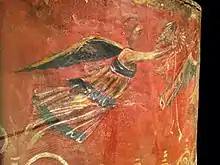 The scutum from Dura-Europos is the only surviving semi-cylindrical shield (scutum) from Roman times. It is now in the Yale University Art Gallery (inventory number 1933.715). The shield was found in the excavation campaign of 1928/37 on Tower 19 of Dura-Europos (in present-day Syria).[1] The city was besieged by the Sassanids in 256, eventually captured and destroyed. The dry climate enables very good conservation conditions for organic materials such as wood. Since the city housed a Roman garrison and was lost during a siege, a particularly large number of weapons were found during the excavations.