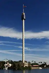 The SeaWorld SkyTower is an observation tower located in the SeaWorld Orlando theme park complex constructed in 1973 and opened in 1974. The tower is the tallest observation tower in Florida and contains a double decker rotating pod. SkyTower is lit with an array of Electronic Theater Control's LEDs as of February 2013. However the height of the tower is 400 feet (122 m) tall from the base to the top of the structure, including topping flagpole)