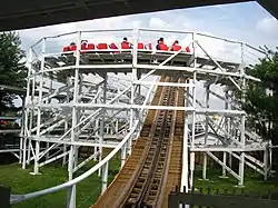 Sea Dragon is a junior wooden roller coaster located at the Columbus Zoo and Aquarium in Powell, Ohio. The ride is in the Rides At Adventure Cove section of the zoo. Built by Philadelphia Toboggan Coasters (PTC) under famed designer John C. Allen, the roller coaster opened in 1956 as Jet Flyer. It was one of three junior wooden coasters that Allen designed shortly after becoming president of PTC in 1954 – the other two were Flyer at Hunt's Pier and Valley Volcano at Angela Park. They were based on earlier designs developed by another legendary coaster architect Herbert Schmeck, who was Allen's mentor.[1] Following the dismantling of the other two coasters in the late 1980s, Sea Dragon became the oldest roller coaster from John Allen to remain in operation.[2][3]