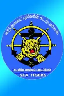 The Sea Tigers (Tamil: கடற்புலிகள் Kaţaṛpulikaḷ) was the naval wing of the Liberation Tigers of Tamil Eelam during the Sri Lankan Civil War. It was founded in 1984.[4] The Sea Tigers had a number of small but effective suicide bomber vessels.[5] During its existence it had gained a reputation as a capable adversary for the Sri Lankan Navy.[6] During the civil war, the Sea Tigers had sunk at least 29 Sri Lankan small inshore patrol boats, 20 Dvora Class fast attack craft, 3 gunboats, 2 Large surveillance command ships, and one freighter.[7]