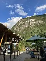 The Sea to Sky Gondola is a privately owned[1] recreational aerial tramway about 2 km (1.2 mi) south of Squamish, British Columbia. On BC-99, it offers views over Howe Sound along with cafes, a lodge, hiking trails, and a suspension bridge, the Sky Pilot Suspension Bridge. The majority of the area is located inside of Stawamus Chief Provincial Park.[2] The upper platform, on top of Mount Habrich, is 885 m (2,904 ft) above sea level.[3]