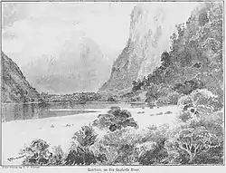 The river was first mapped in 1896 by Thomas Mackenzie, who was briefly Prime Minister in 1912.[3] He described cataracts of 10 ft (3.0 m), 25 ft (7.6 m) and 60 ft (18 m) between the Sound and the Loch[4] and named the river after himself.[3] However, in 1897 E. H. Wilmot discovered that the Mackenzie and Seaforth were the same river and removed the former name.[5] The route Mackenzie followed is now part of the Dusky Track.[6] It was thought that few had followed the route until at least 1950.[7]
