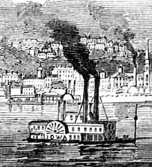 - Steamer Iowa. The Steamboat Iowa was revered as one of the largest and fastest boats on the Mississippi; it set the speed record from Galena, Illinois to St. Louis in 1843, making the trip in 44 hours, a record that held until 1849.[4] The Mississippi was the primary route of transportation in Iowa in the 1840s, and most large Iowa towns were on or near the Mississippi.