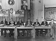 The SUA also took part in a wide range of social and political issues over the years, for example campaigning for Aboriginal rights, opposing apartheid in South Africa, opposing the Vietnam War, and participating in the nuclear disarmament movement.[1] The SUA also took part in the black bans and boycotts of Dutch shipping, where the union movement of Australia worked to aid the nascent Indonesian Republic, in particular, ensuring that no tugs towed Dutch ships.[3] These bans commenced in September 1945,[4] and continued through to 1949.[5] The union's longest serving leader was Eliot V. Elliott who led the SUA from 1941–1978.