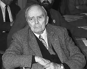 Seán MacBride (26 January 1904 – 15 January 1988)[1] was an Irish Clann na Poblachta politician who served as Minister for External Affairs from 1948 to 1951, Leader of Clann na Poblachta from 1946 to 1965 and Chief of Staff of the IRA from 1936 to 1937. He served as a Teachta Dála (TD) from 1947 to 1957.[2][3]