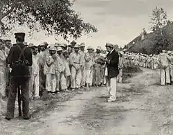 Spanish Navy prisoners of war arriving at Seavey's Island in 1898