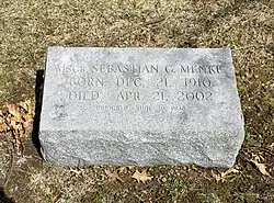 In 1985 Msgr. Menke retired as the cathedral rector and took up residence at St. Mary’s Church in Iowa City. At the end of 1991 he left Iowa City and retired to St. Vincent Center in Davenport.[7] He died in 2002 at the age of 91. Memorial Masses were held at Christ the King Chapel at St. Ambrose and Sacred Heart Cathedral. He donated his body to the Department of Anatomy at the University of Iowa, which was later buried in the Priests' Circle of Mount Calvary Cemetery in Davenport.[8]