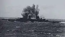 The Second Battle of Sirte (on 22 March 1942) was a naval engagement in the Mediterranean Sea, north of the Gulf of Sidra and southeast of Malta, during the Second World War. The escorting warships of a British convoy to Malta held off a much more powerful squadron of the Regia Marina (Italian Navy). The British convoy was composed of four merchant ships, escorted by four light cruisers, one anti-aircraft cruiser and 17 destroyers. The Italian force comprised a battleship, two heavy cruisers, one light cruiser and ten destroyers.[1] Despite the initial British success at warding off the Italian squadron, the Italian fleet attack delayed the convoy's planned arrival before dawn, which exposed it to intense air attacks that sank all four merchant ships and one of the escorting destroyers in the following days.[2]