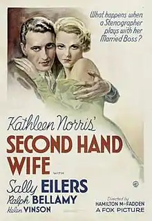 Second Hand Wife is a 1933 American pre-Code drama film written and directed by Hamilton MacFadden. The film stars Sally Eilers, Helen Vinson, Ralph Bellamy, and Victor Jory. The film was released on January 8, 1933 by Fox Film Corporation.[1][2][3]