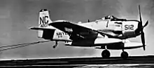 ![]() VA-95 AD-7 Skyraider landing on USS Ranger in 1960 | |