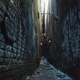 Swingsite was an art installation that consisted of a playground swing hanging in the narrow space between two buildings in Toronto, Ontario, Canada. The swing was accessed by way of the alley behind Queen Street West,[1] which is known as one of Toronto's best graffiti galleries. Toronto artist Corwyn Lund erected the swing in September 2003 as part of a group show called 'Psychotopes' at YYZ Artists Outlet.[2] As part of that show, Lund made and displayed a video about the installation.[3]