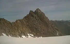 ![]() West ridge of the Seekogel from the Löcherferner (glacier). | |