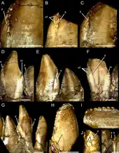 - ↑ Zanno, L. E. (2010). "Osteology of Falcarius utahensis (Dinosauria: Theropoda): characterizing the anatomy of basal therizinosaurs". Zoological Journal of the Linnean Society. 158 (1): 225. doi:10.1111/j.1096-3642.2009.00464.x.
