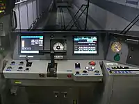 Driver's cab of a later-model 6000 series trainset, showing modifications made for improved visibility