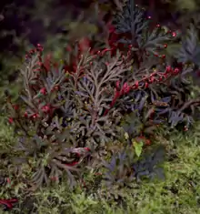 Selaginella erythropus is a species of spike moss in the Selaginellaceae family, native to Central and tropical South America, and may be native or introduced in the West Indies. It has been introduced to Tanzania.[1][2] It grows up to 30–40 cm (12–16 in) in height, and the upper surface of the fronds is green and the underside is a bright, ruby red color. It likes plentiful water and humidity and enjoys temperatures of 10–24 °C (50–75 °F).