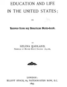 - ↑ Hadland, Selina (1895). Education and Life in the United States: Or, Leaves from My American Note-book. E. Stock.