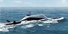 In 2014, the United States Naval Special Warfare Command (NAVSPECWARCOM) unveiled its SEAL Insertion, Observation, and Neutralization (SEALION) craft, designed and built as a Combatant Craft Heavy (CCH). The craft is designed for low radar observability and can carry crew and payload internally. At that time there were two units operational, with a third one ordered for delivery in 2018.[7] The SEALION is reportedly a semi-submersible with a planing hull for surface running and ballast tanks to run with a reduced profile. Its dimensions are 80 feet (24 m) long, 14.5 feet (4.4 m) abeam, and 9.5 feet (2.9 m) from keel to cabin roof. It displaces 80,000 pounds (36 t) and is powered by two ten-cylinder, 1,500-horsepower (1,100 kW) diesel engines. Its aft payload bay is configured to accommodate either two inflatable boats, one special forces modified jet ski, or eight seats.[8]